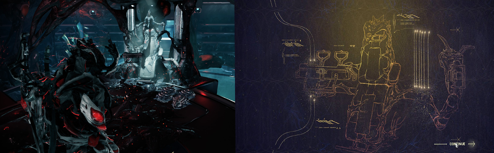 This begins the previously covered quest, The Sacrifice, in which the player learns of how Warframes are created, and of Ballas and Hunhow’s plan to collapse the Orokin Empire.