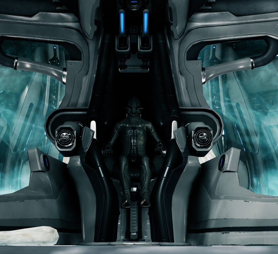 On the Orbiter, the player is directed to go to a never before entered part of their ship. At the back of the ship is a device called the Somatic Link in which the player must connect the Operator to in order to fully re-establish transference with their Warframe. They encounter the Stalker on-board the ship, and this time the Stalker no longer hesitates to kill the Operator; grabbing the child by the throat and choking them. Suddenly the player’s Warframe unexpectedly begins to move seemingly on its own to defend the operator. The Stalker is forced to retreat.